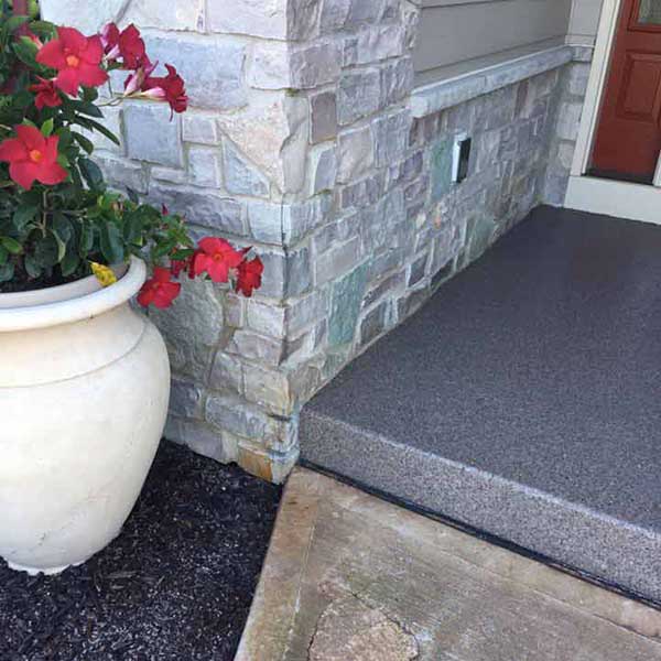 - Step 6: Clear coat – We’ll finish the job by rolling out the UV stable, polyaspartic clear coat over the top of the flakes to seal the coating in place